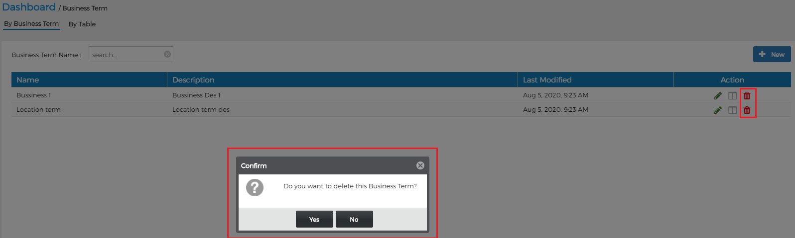 - Delete Business Term: