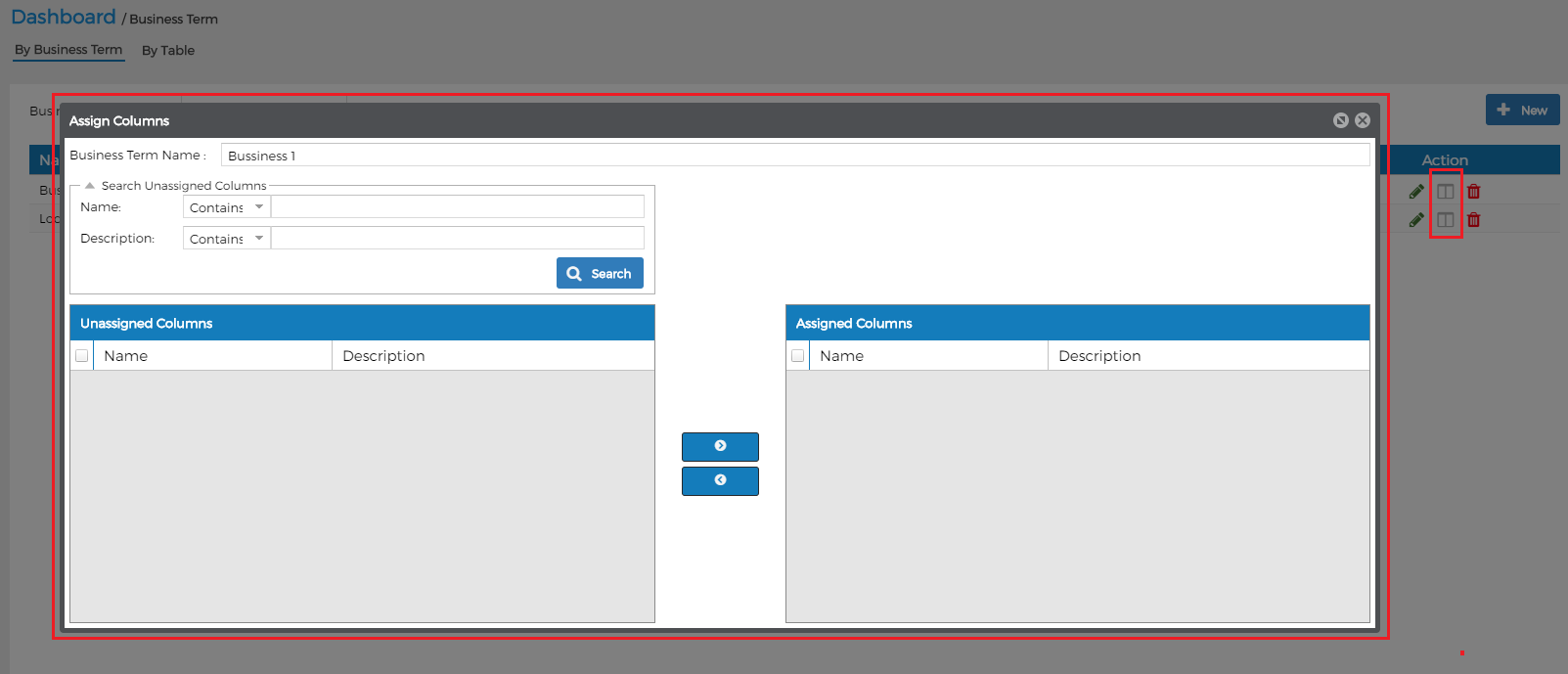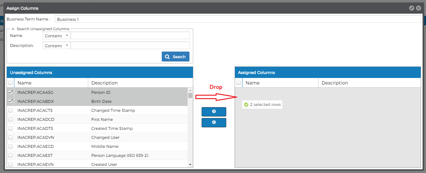 - Left gird: UnAssigned Columns: We can click on search to search columns.