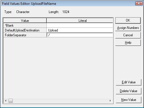 8. Create two fields “UploadFileName” and “UploadControl” with the following triples and values: