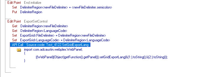 gridctl.processAction("ChangeColumnHeading", values);A: You can generate source codes in Plex to Encrypt/Decrypt the data you need, for example you may want to encrypt the value of a field that will be stored in a cookie so the clients cannot see that value at runtime using the browser console, then you will also need decrypt the value of that cookie anytime you need that value in the server side, here are some examples of source codes that you can use for both cases: