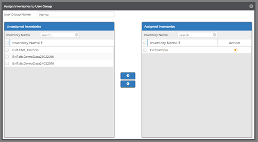 A Popup screen will display titled: Assign Inventories to Object Group